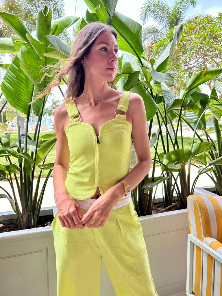 بنطلون خصر أخضر ليموني × أبيض