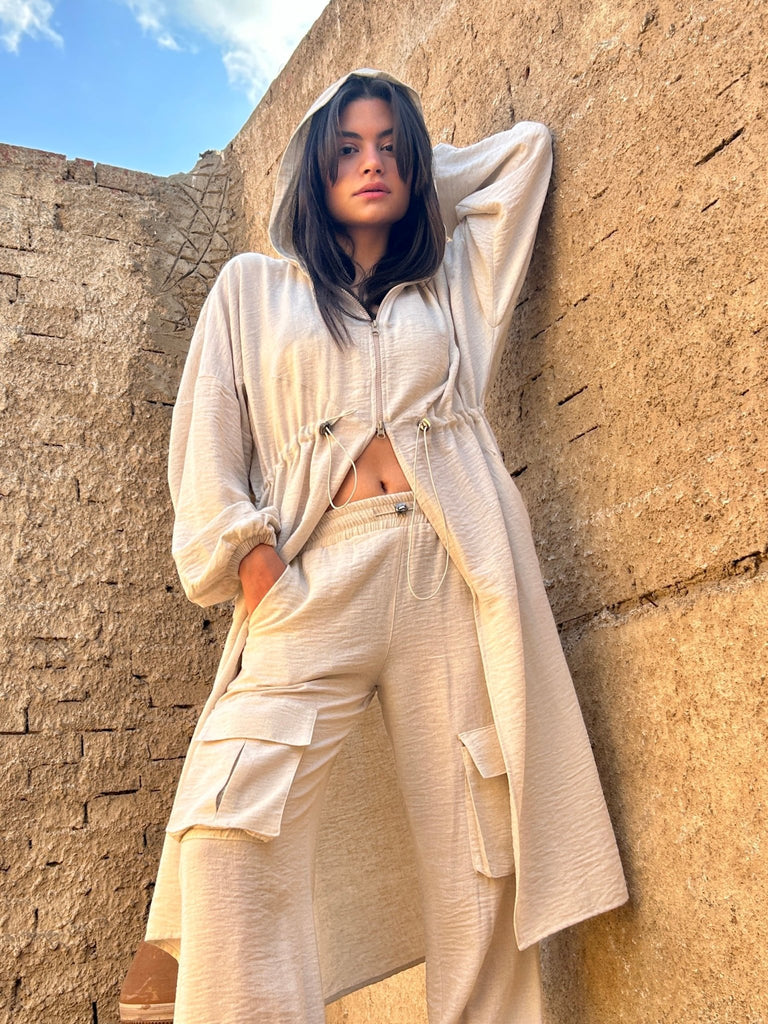 كارديجان من الكتان بغطاء للرأس