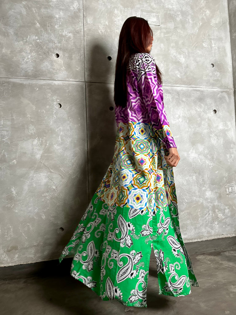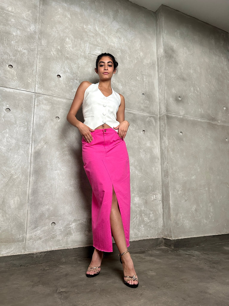 تنورة ماكسي وردية من الجبردين بفتحة أمامية