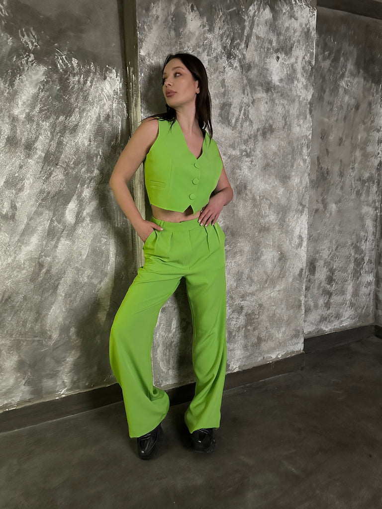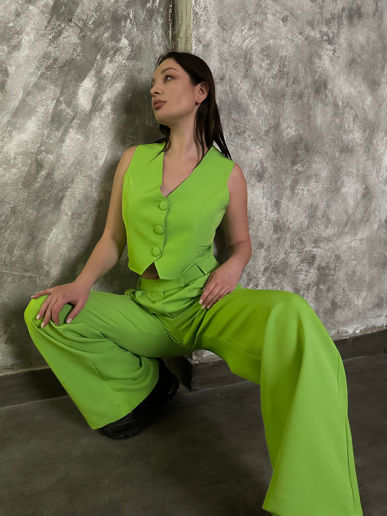 بنطلون أخضر منخفض الخصر مطوي - تم طلبه مسبقًا وسيتم شحنه بمجرد عودته إلى المخزون.