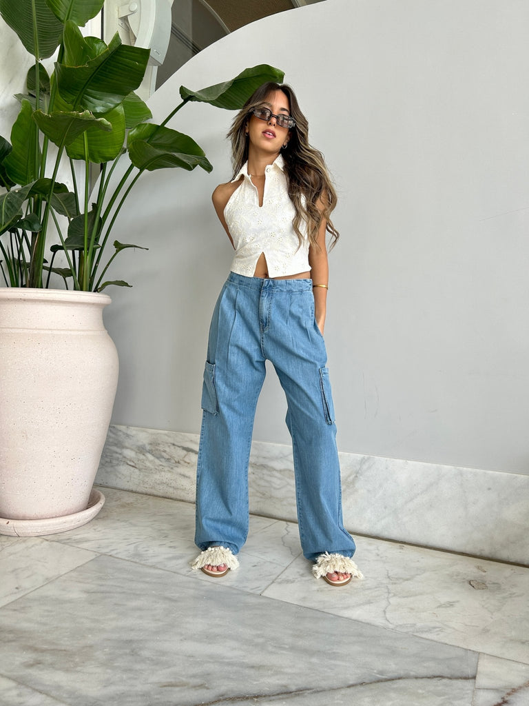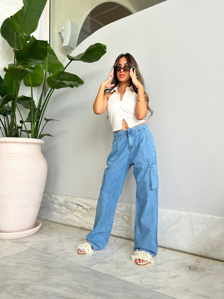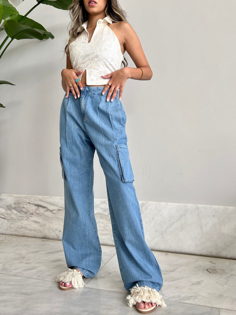 بنطال جينز خفيف الوزن متوسط الارتفاع ومطوي، إضافة أنيقة ومتعددة الاستخدامات لأي خزانة ملابس. مصنوع من قماش جينز عالي الجودة بلون داكن غني، ليمنحك مظهرًا أنيقًا وراقيًا.