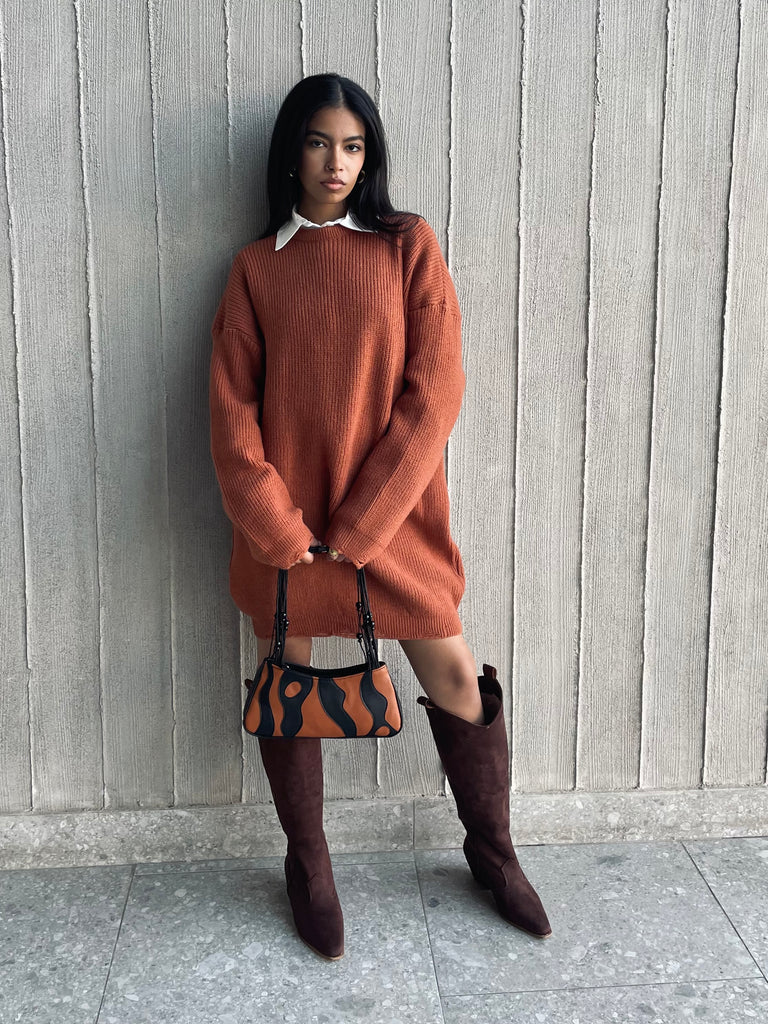 فستان سويت شيرت ممزق من قماش فرنسي صدئ