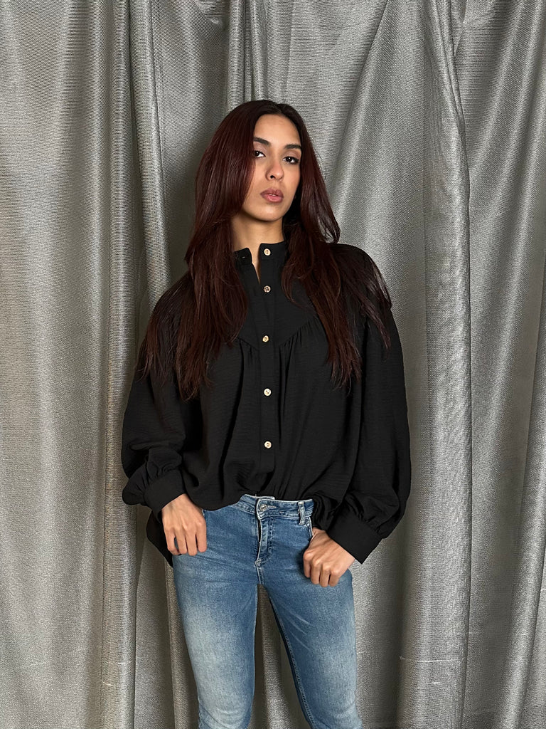 Black Puff Sleeve Linen Shirt