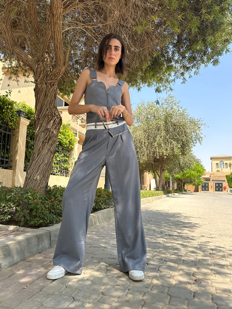 Grey X Baby Blue Argyle Polo Knit Pullover