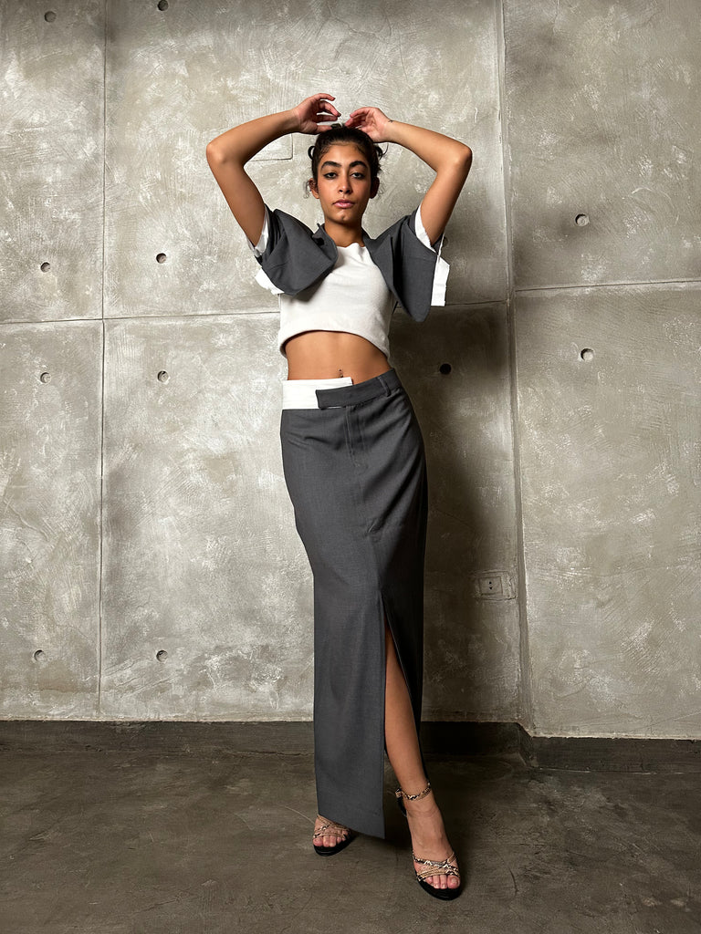Grey X Cafe Argyle Off Shoulder Knit Pullover