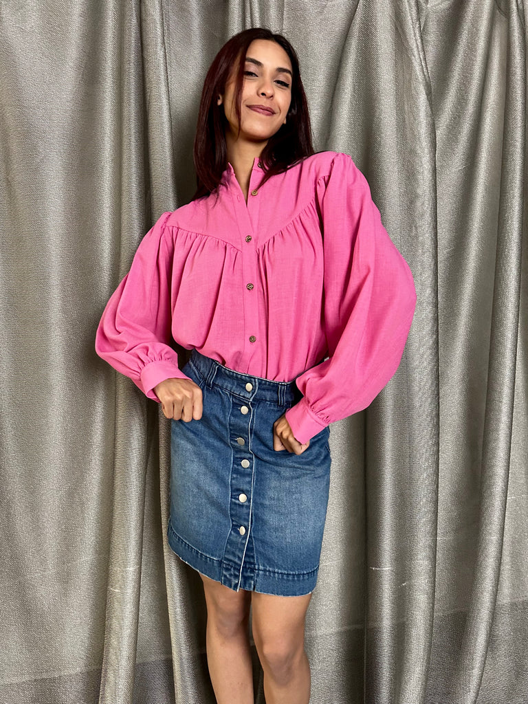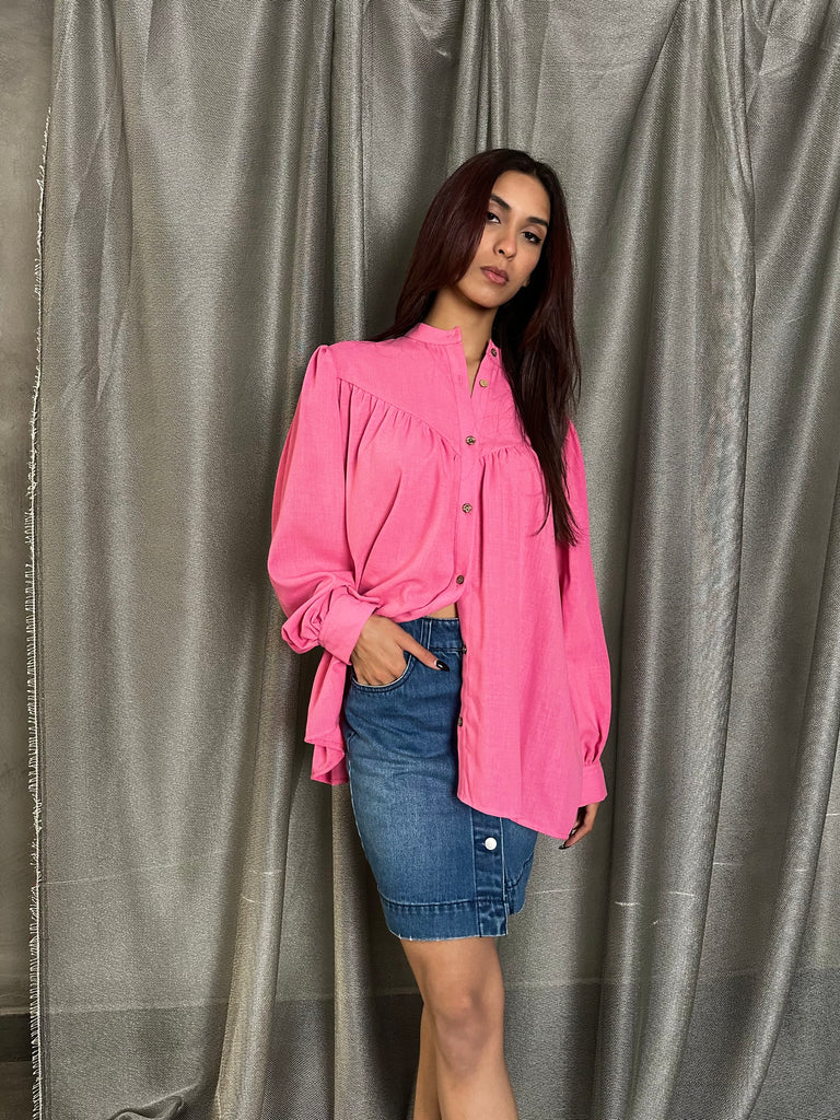 Pink Puff Sleeve Linen Shirt - is backordered and will ship as soon as it is back in stock.