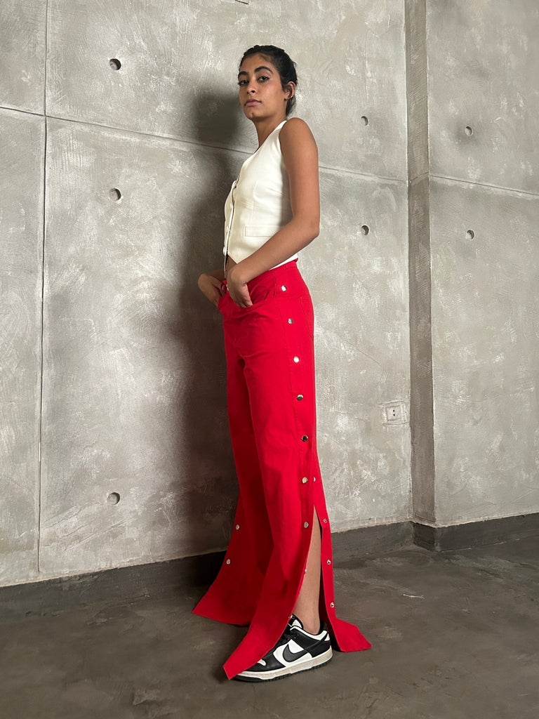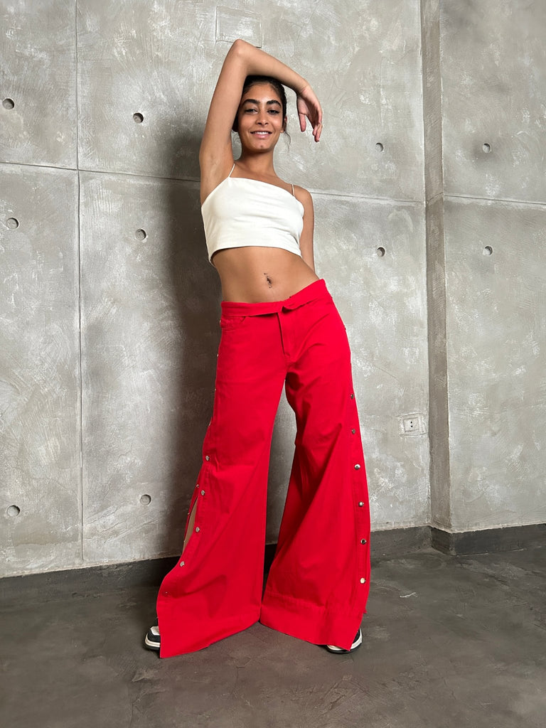 Side snap button wide-leg pants are a stylish and versatile choice for those seeking a unique and modern twist on traditional wide-leg pants. These pants feature a series of snap buttons along the side seams, allowing for adjustable and customizable fit and adding a touch of visual interest.