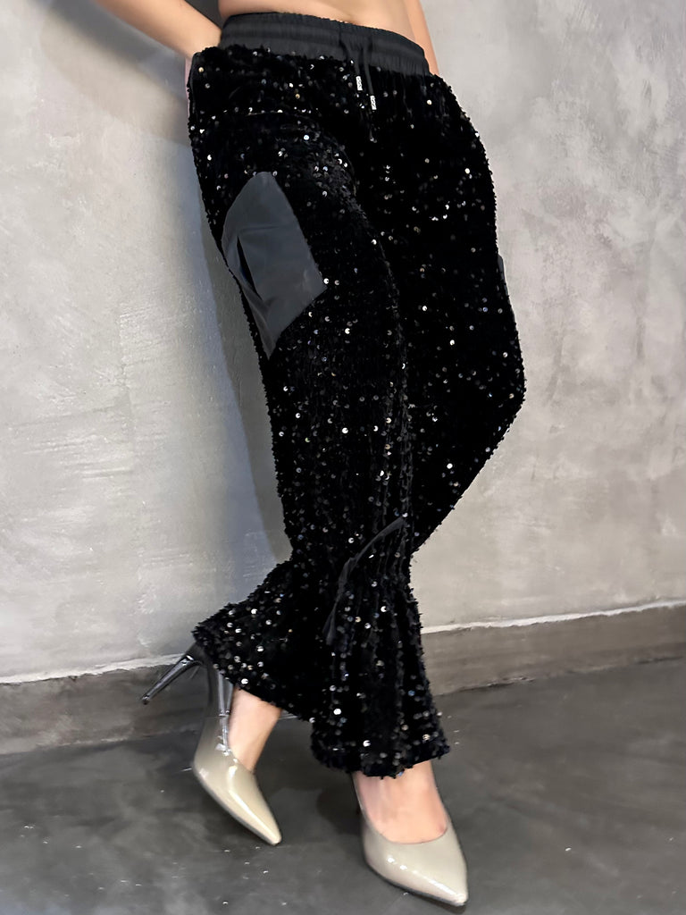 Introducing Sequin Drawstring Pants, where glamour and comfort effortlessly come together. These pants are adorned with shimmering sequins, making them perfect for adding an elegant touch to any occasion. With an adjustable drawstring waist, you can enjoy a personalized fit, ensuring you feel as good as you look. Versatile and chic, whether it's a night out or a chic daytime ensemble, these pants are designed to help you make a statement in style.